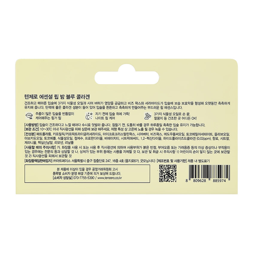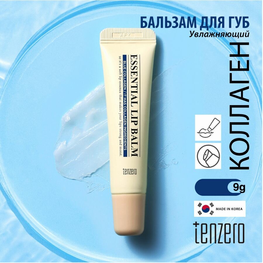 TENZERO Увлажняющий бальзам для губ с коллагеном, корейская косметика 9г Essential Lip Balm Blue Collagen