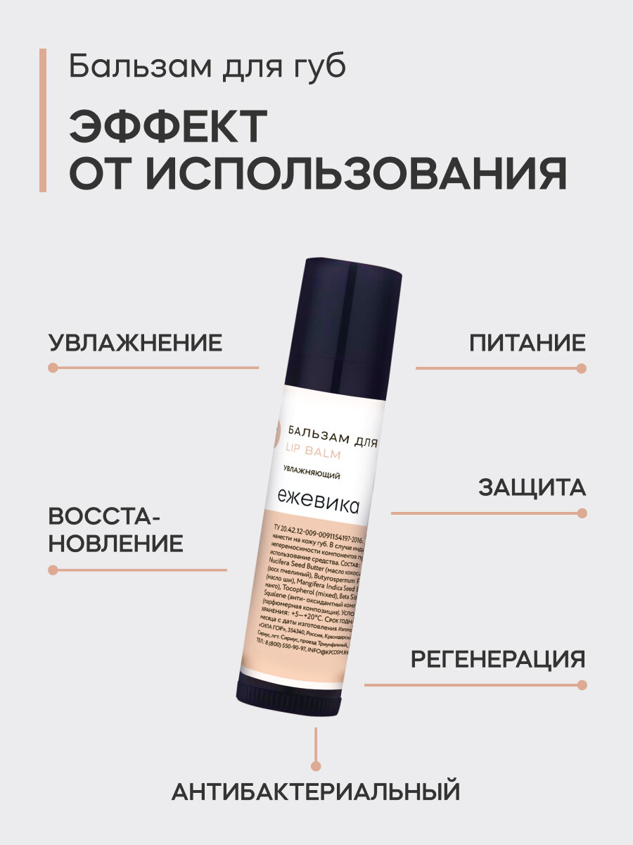| Эффект | восстановление / защита от холода и ветра / от трещин / питание / повышение упругости / увлажнение |