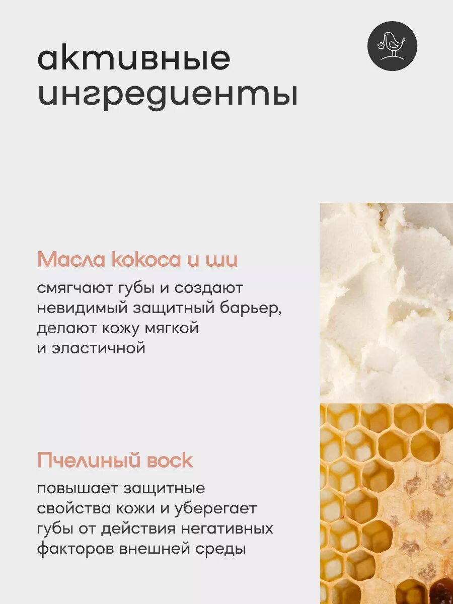 | Активный ингредиент | антиоксиданты / воск пчелиный / кокосовое молоко / прополис |