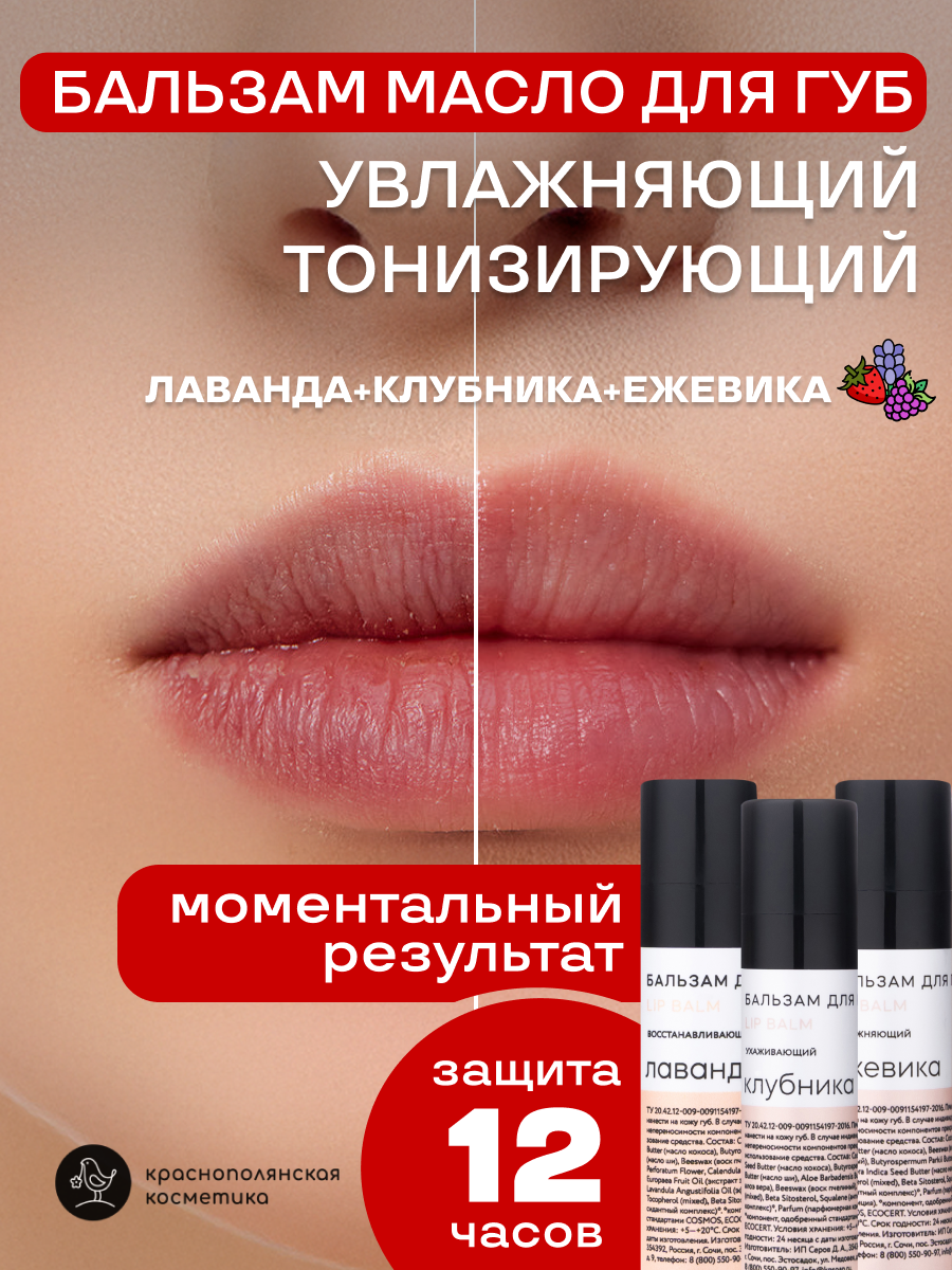 Краснополянская косметика Набор натуральных бальзамов для увлажнения и защиты кожи губ Лавандово-ягодный микс, 3 шт
