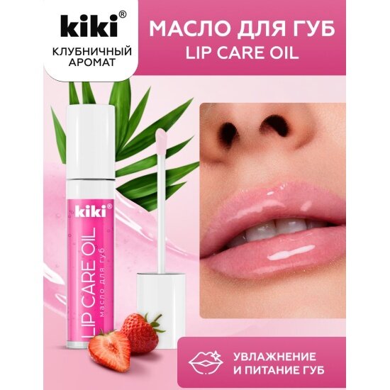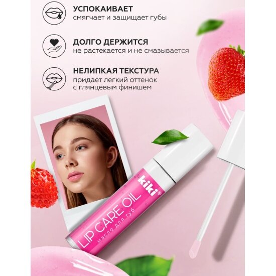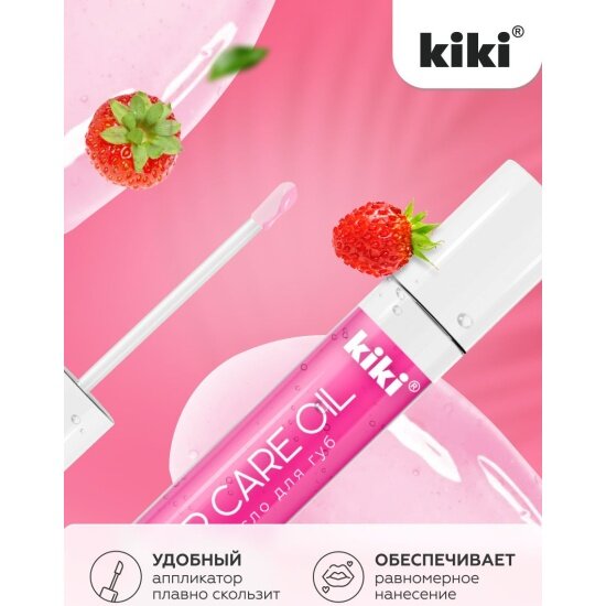 Масло для губ KIKI LIP CARE OIL с ароматом "клубника", блеск и увлажнение, тон 02, 3,5 мл, кики