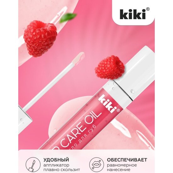 Масло для губ KIKI LIP CARE OIL с ароматом "малина", блеск и увлажнение, тон 01, 3,5 мл, кики