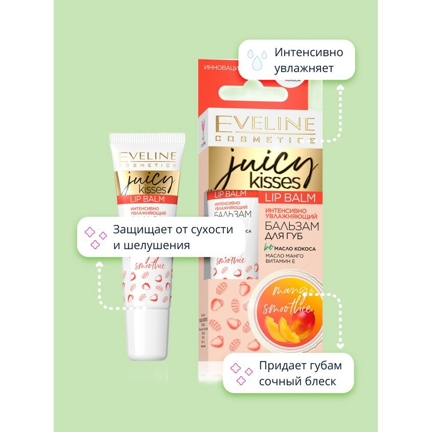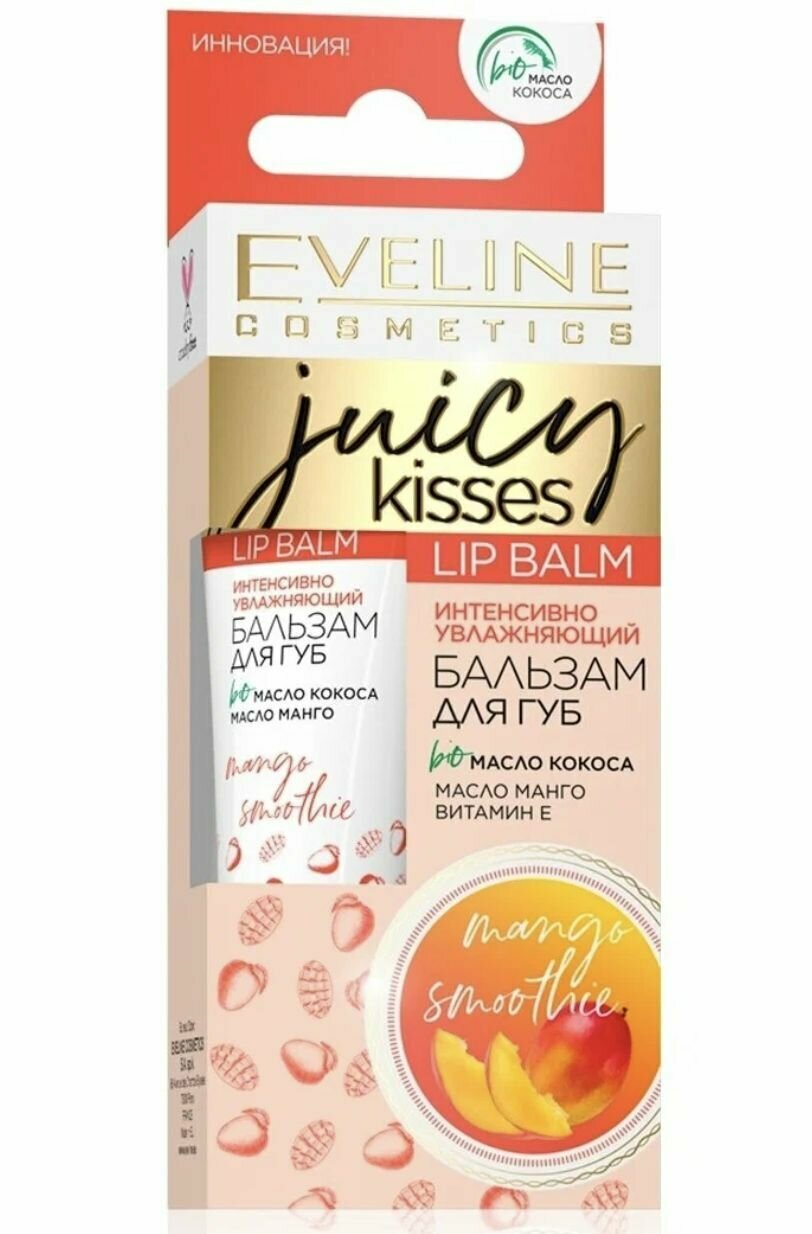 Купить Интенсивный увлажняющий бальзам для губ, Eveline Cosmetics, mango smoothie, juicy kisses, 12 мл