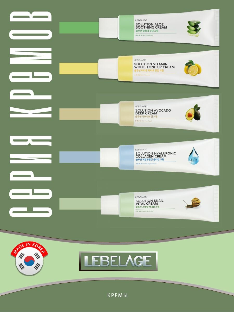 LEBELAGE Питательный крем для лица, шеи и зоны декольте с экстрактом авокадо и пептидами. Solution Avocado Deep Cream. Антивозрастная уходовая корейская косметика от морщин
