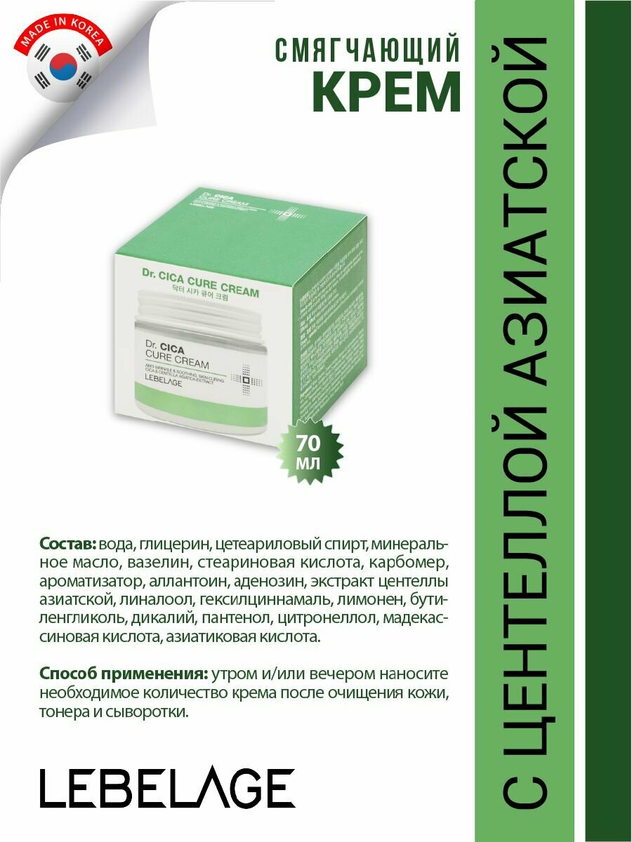 Купить Lebelage Dr. Cica Cure Cream Крем для лица с центеллой азиатской 70 мл