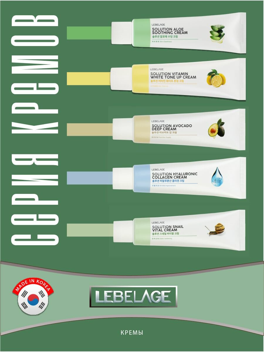 LEBELAGE Питательный крем для лица, шеи и зоны декольте с экстрактом авокадо и пептидами. Solution Avocado Deep Cream. Антивозрастная уходовая корейская косметика от морщин