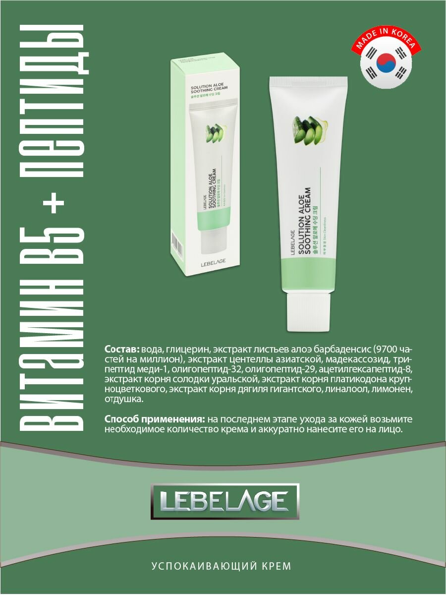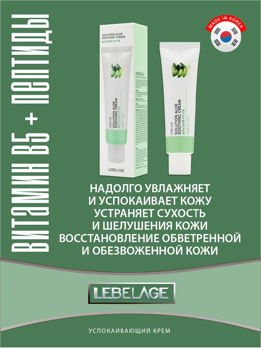 LEBELAGE Успокаивающий крем для лица увлажняющий с алоэ и пептидами антивозрастная уходовая корейская косметика Solution Aloe Soothing Cream 50ml