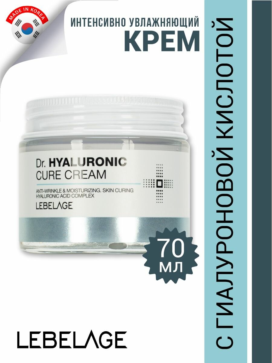 LEBELAGE Интенсивно увлажняющий крем для ухода за кожей лица, шеи и зоны декольте с гиалуроновой кислотой, корейская косметика. 70мл