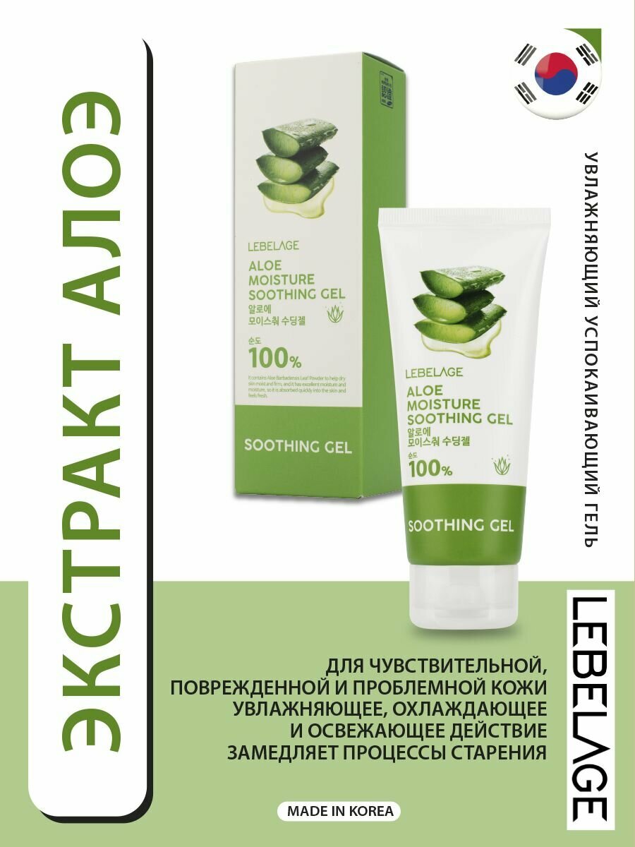 Купить LEBELAGE Увлажняющий успокаивающий гель для ухода за кожей лица, шеи, зоны декольте, тела с экстрактом алоэ, корейская косметика. 100мл