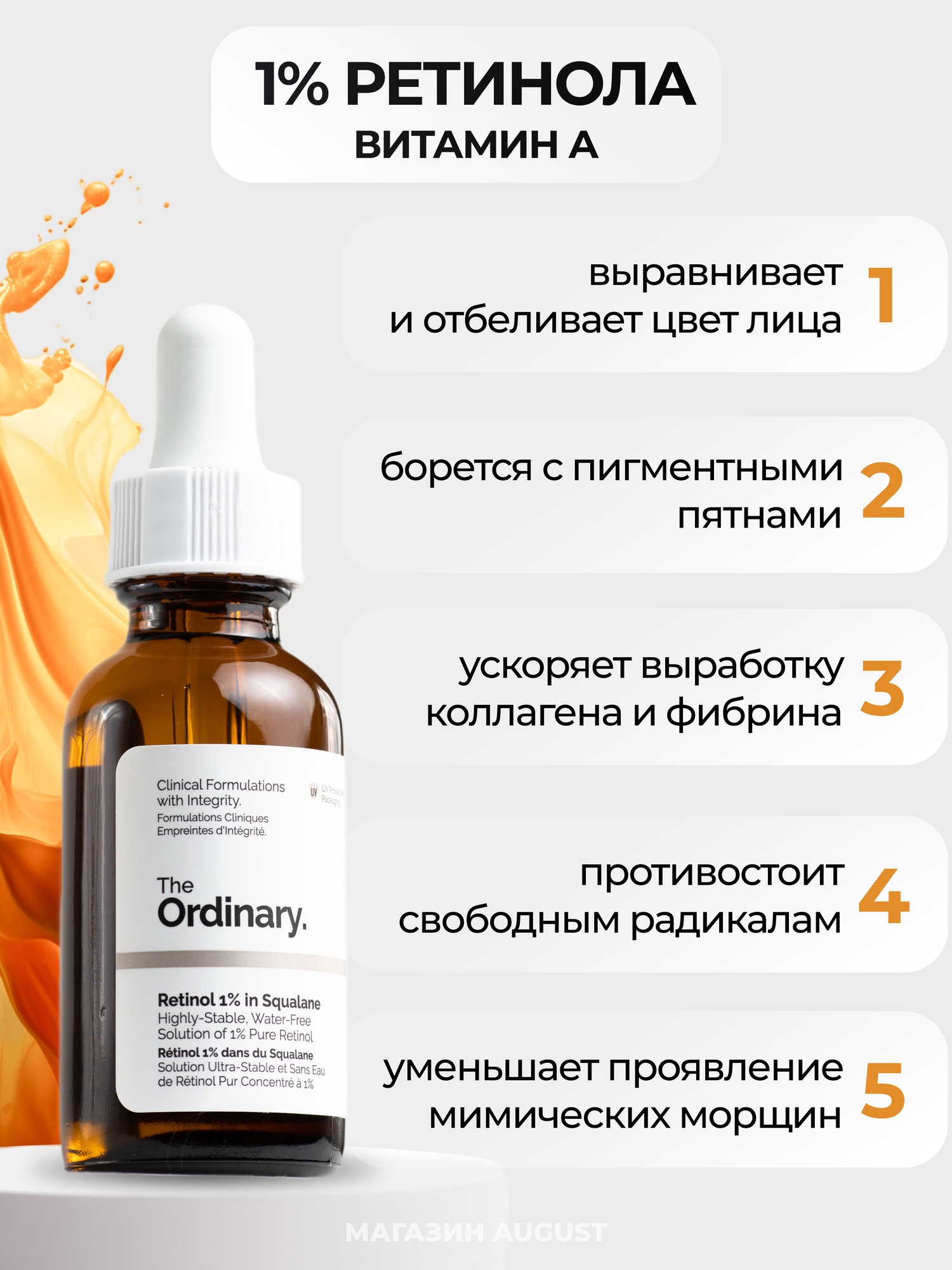 Сыворотка The Ordinary Squalane 30ml, ретинол 1%, антиоксидантный эффект