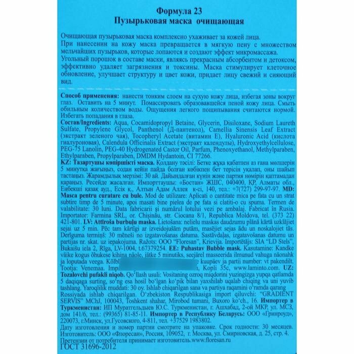 Floresan Маска пузырьковая 10 саше по 15мл интересное: