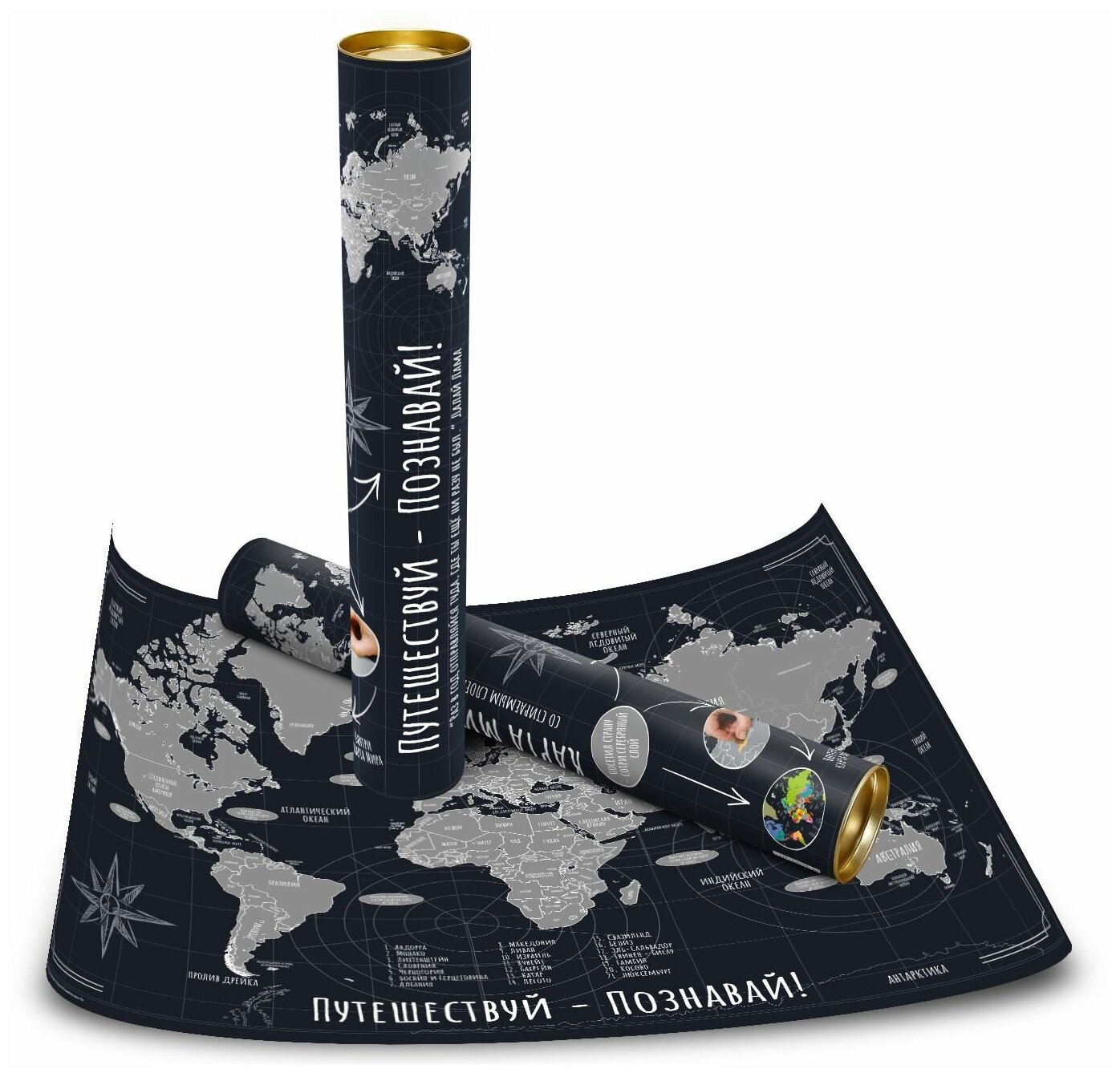 Карта мира со стираемым слоем "Путешествуй-Познавай" (650*450мм) в тубусе интересное: