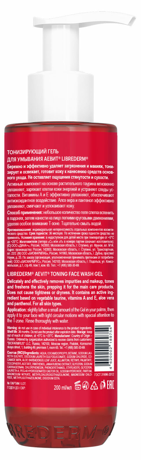 Купить AEVIT BY LIBREDERM / аевит Гель тонизирующий для умывания 200 мл