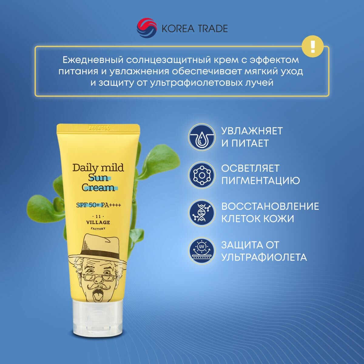 СохранитьСолнцезащитный крем VILLAGE 11 FACTORY "Daily Mild Suncream", для ежедневного применения SPF 50, 50 . интересное: