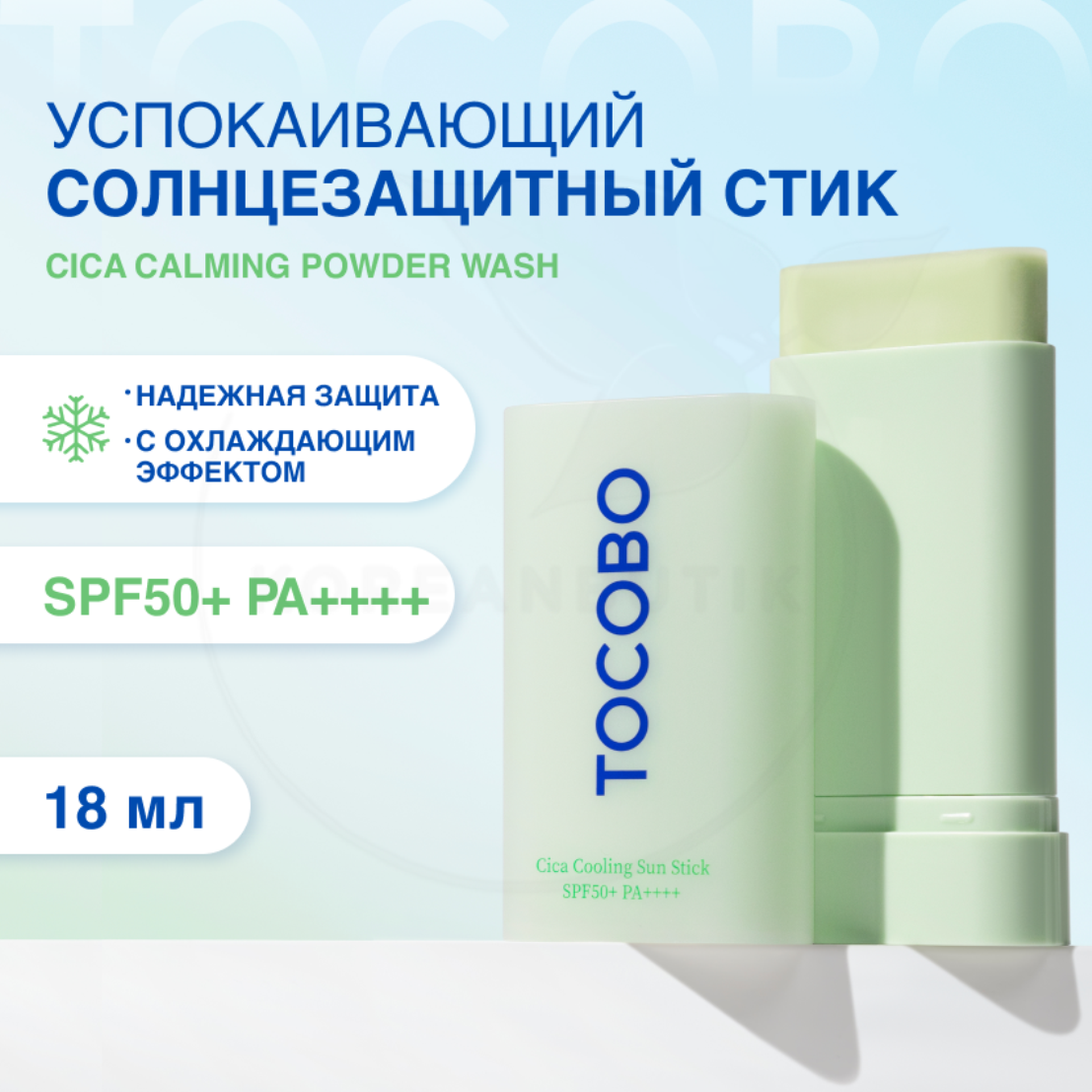 Tocobo Cica Cooling Sun Stick SPF50+ PA++++ Солнцезащитный стик, 18 гр