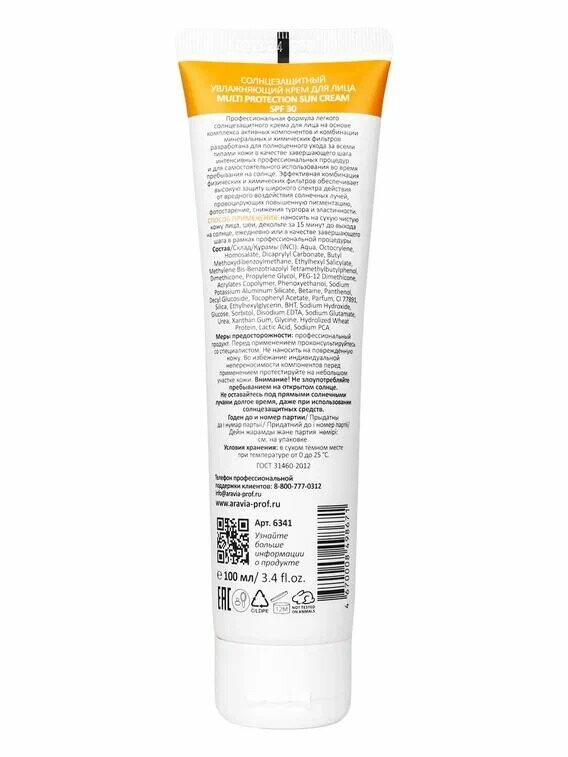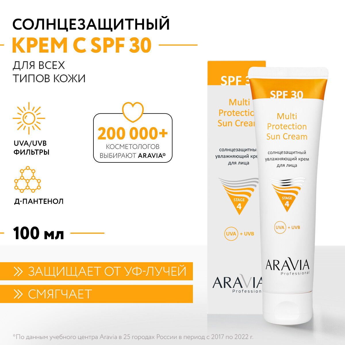 ARAVIA Professional Солнцезащитный увлажняющий крем для лица Multi Protection Sun Cream SPF 30, 100 мл интересное: