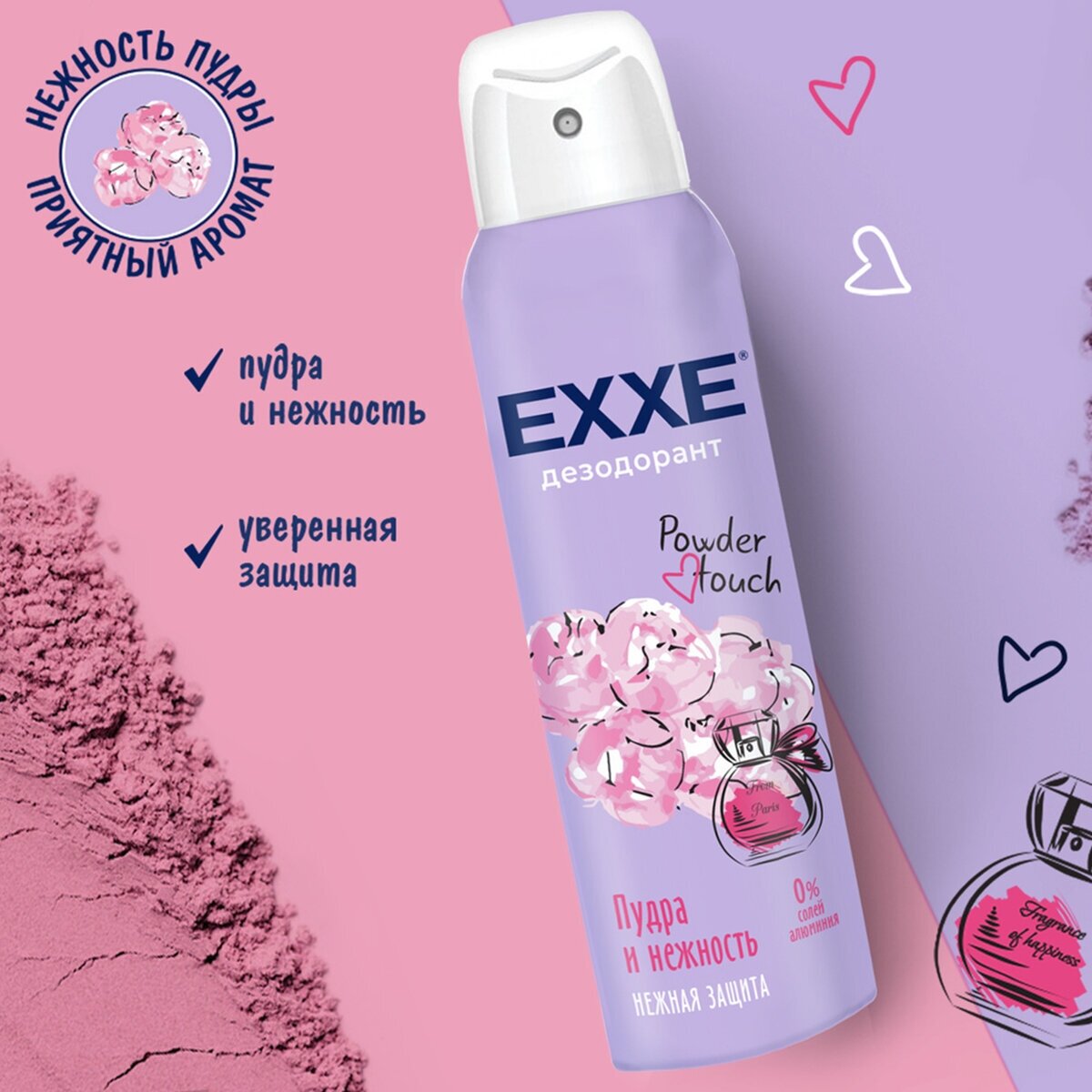 Купить Дезодорант женский Powder touch Пудра и нежность спрей 150мл / защита от пота и запаха, EXXE