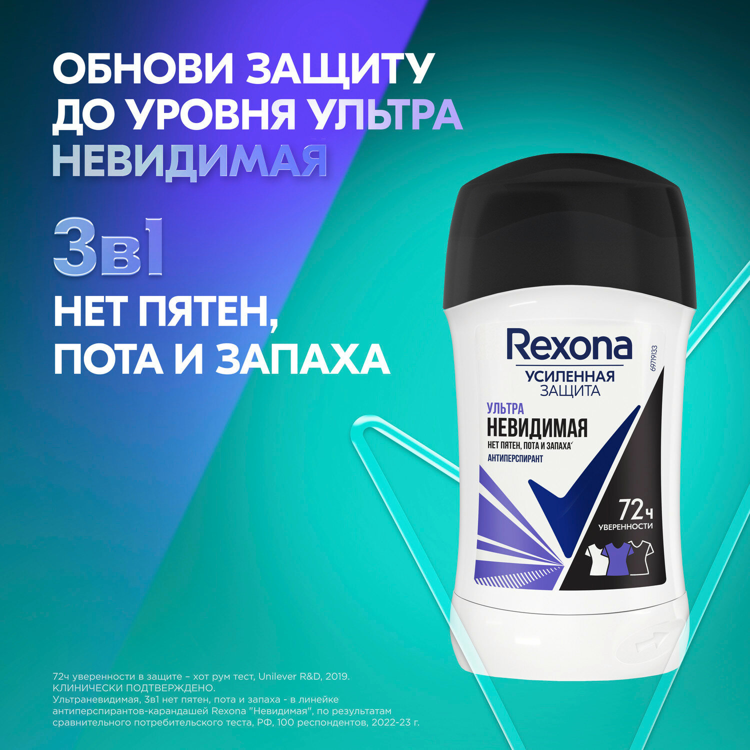 РЕКСОНА Антиперспирант-карандаш 3в1 "Ультраневидимая" 72ч уверенности нет пятен, пота и запаха жен, 40 мл