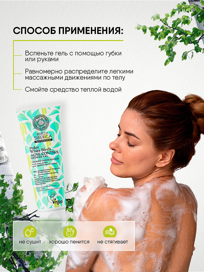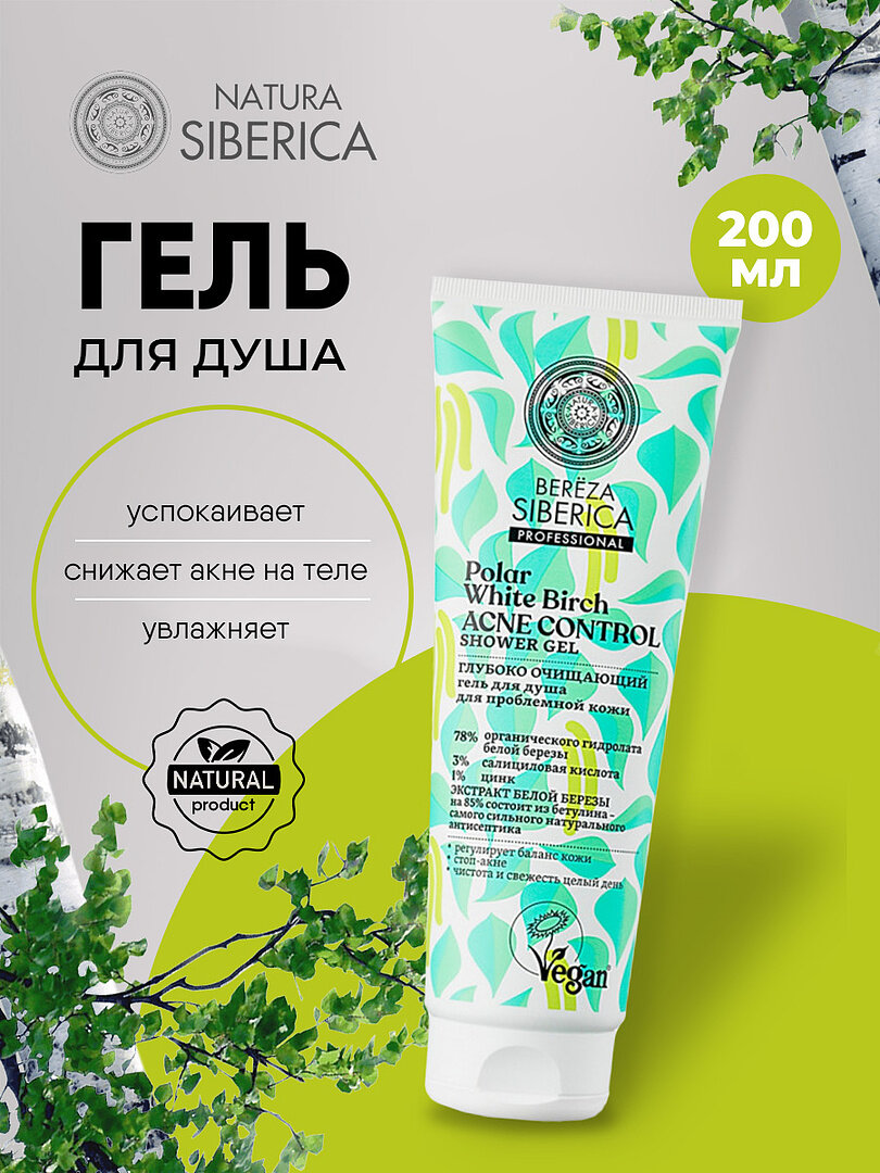 Купить Natura Siberica Гель для душа для проблемной кожи от акне Bereza Siberica, 200 мл