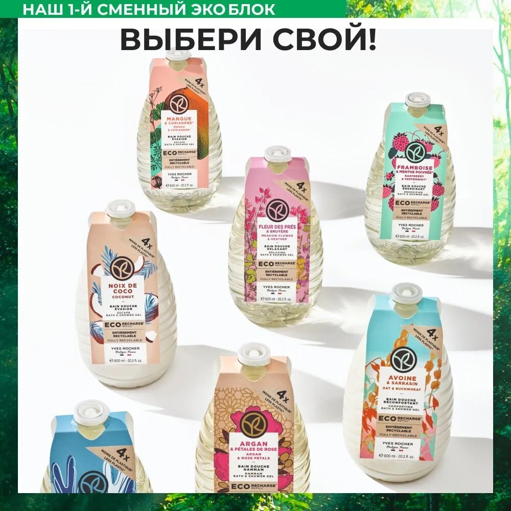 Yves Rocher Гель для ванны и душа "Малина и перечная мята" - сменный эко-блок 600мл