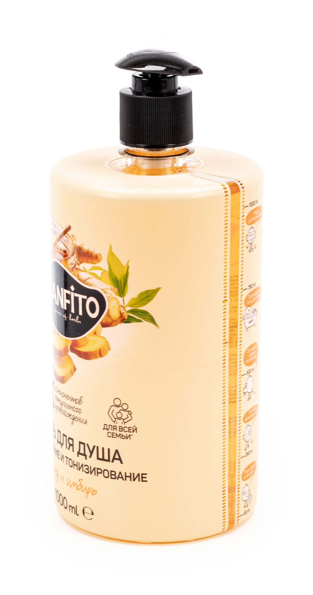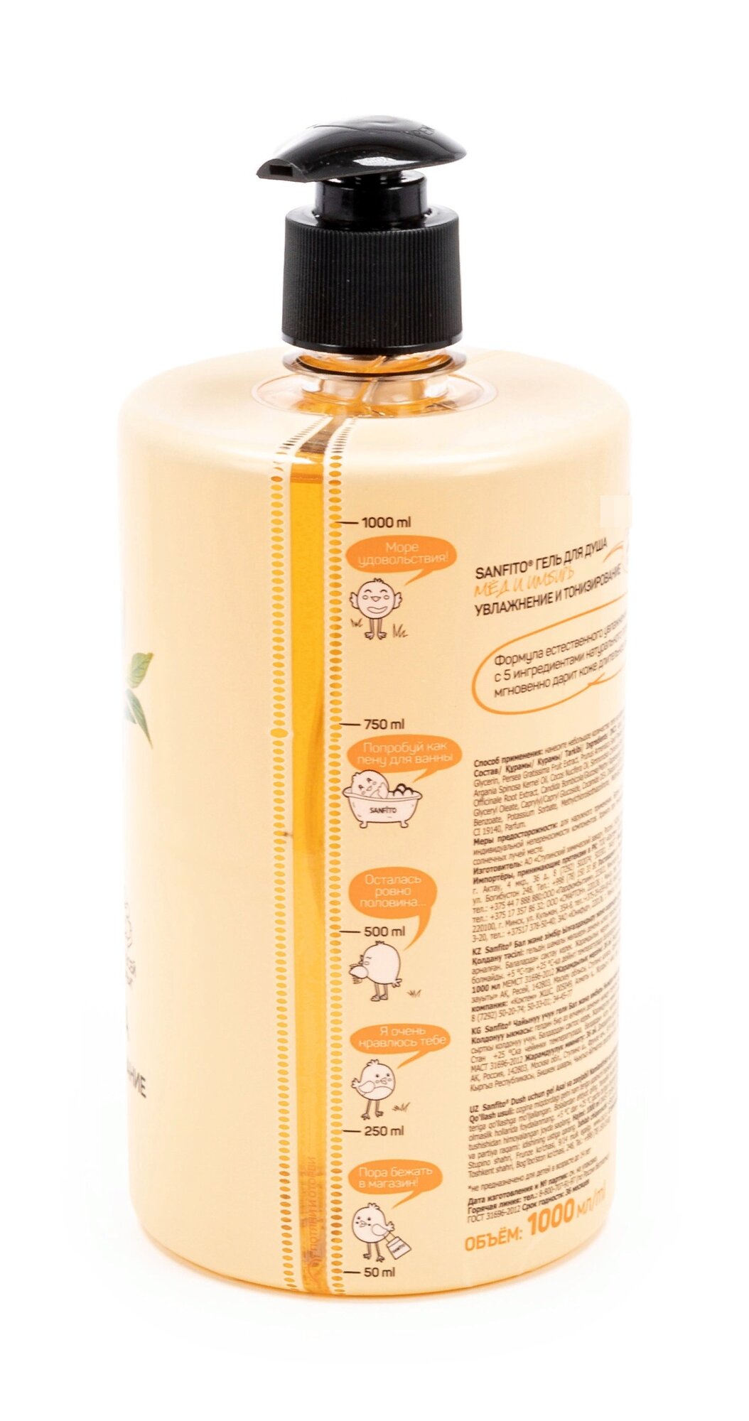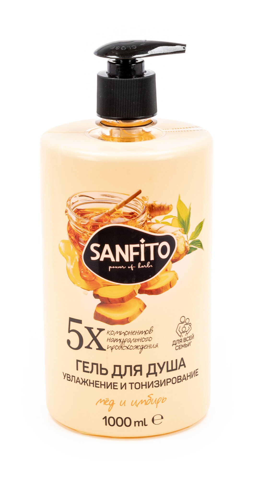 Гель для душа Sanfito "Мед и имбирь", Увлажнение и тонизирование, 1 л (25461)