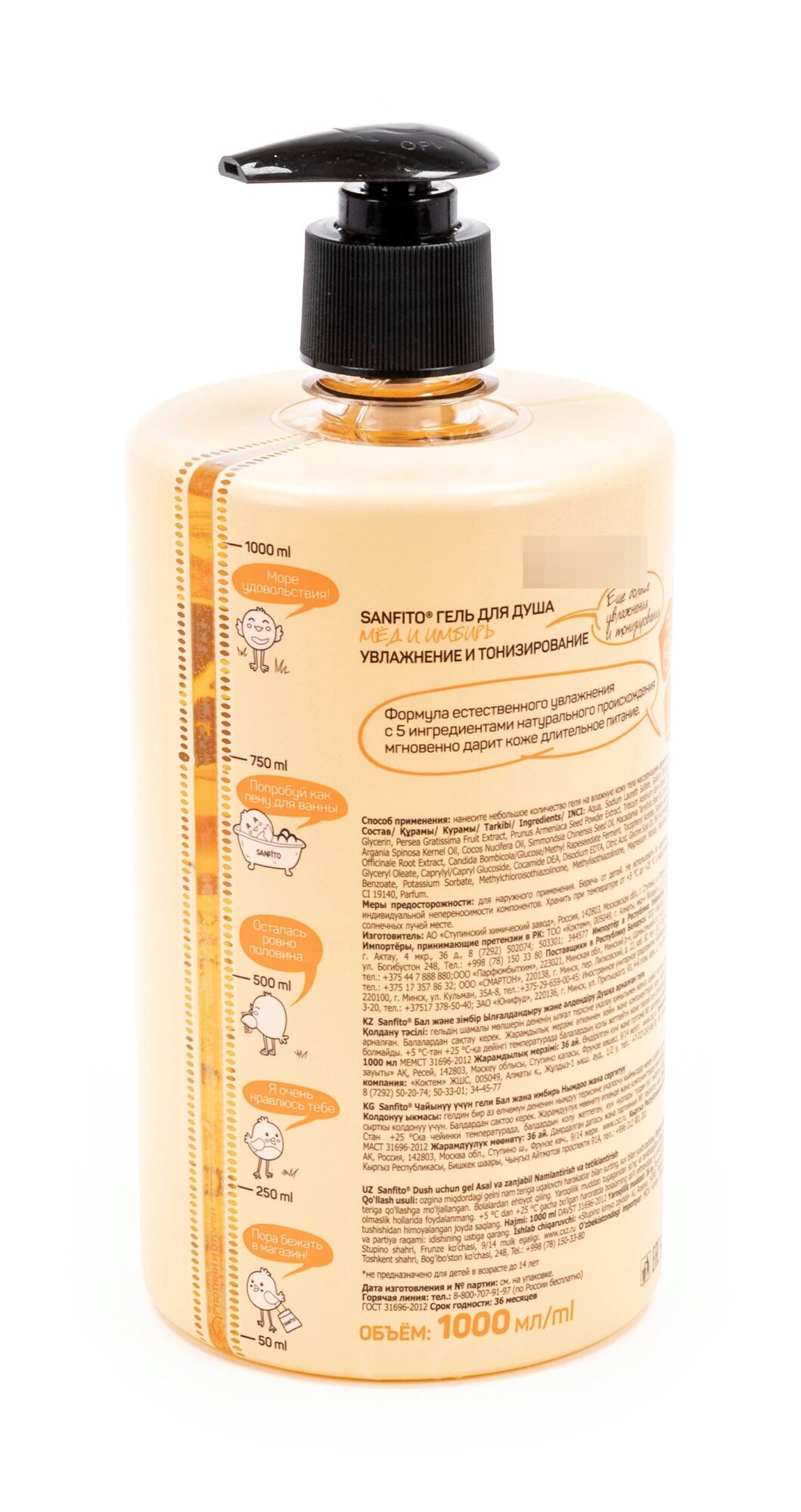 Ступинский химический завод (СХЗ) Гель для душа SANFITO, мед и имбирь, увлажнение и тонизирование, 1 л