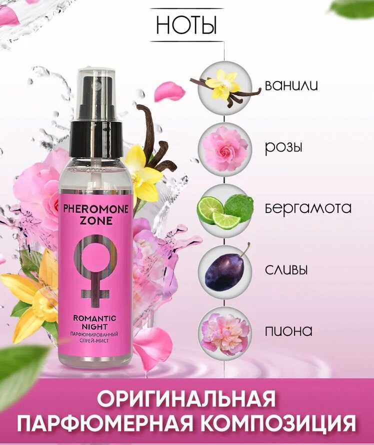 Liv-Delano Pheromone Zone Парфюмированный спрей-мист женский для тела Romantic Night 100мл интересное: