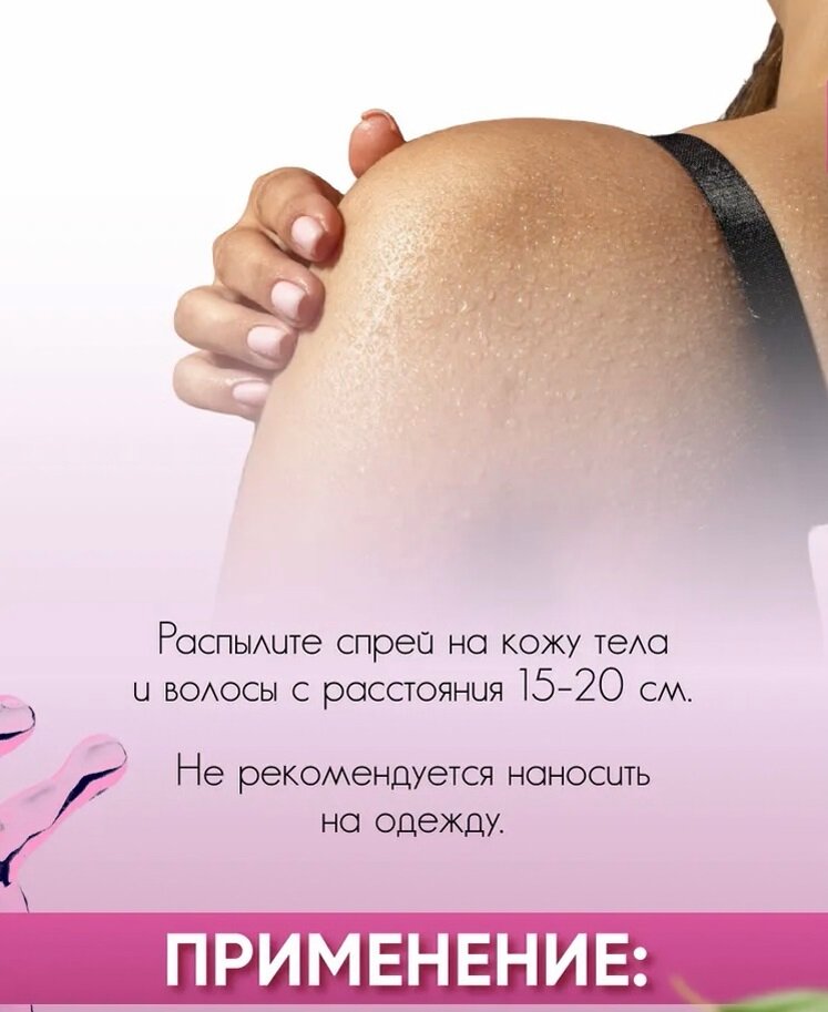 | Способ применения | распылить спрей на кожу тела с расстояния 15-20 см. Не рекомендуется наносить на одежду. |