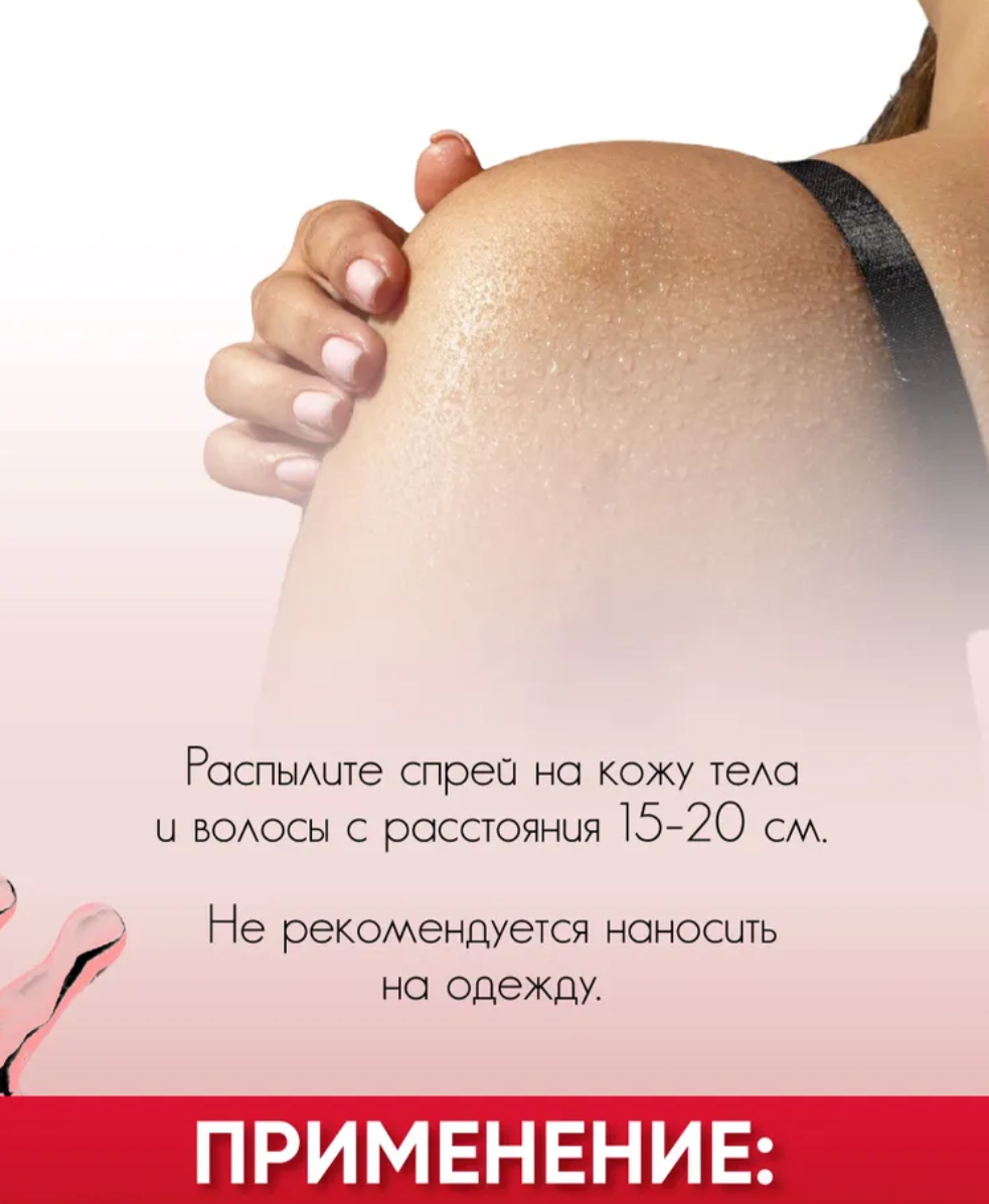 | Способ применения | распылить спрей на кожу тела с расстояния 15-20 см |
