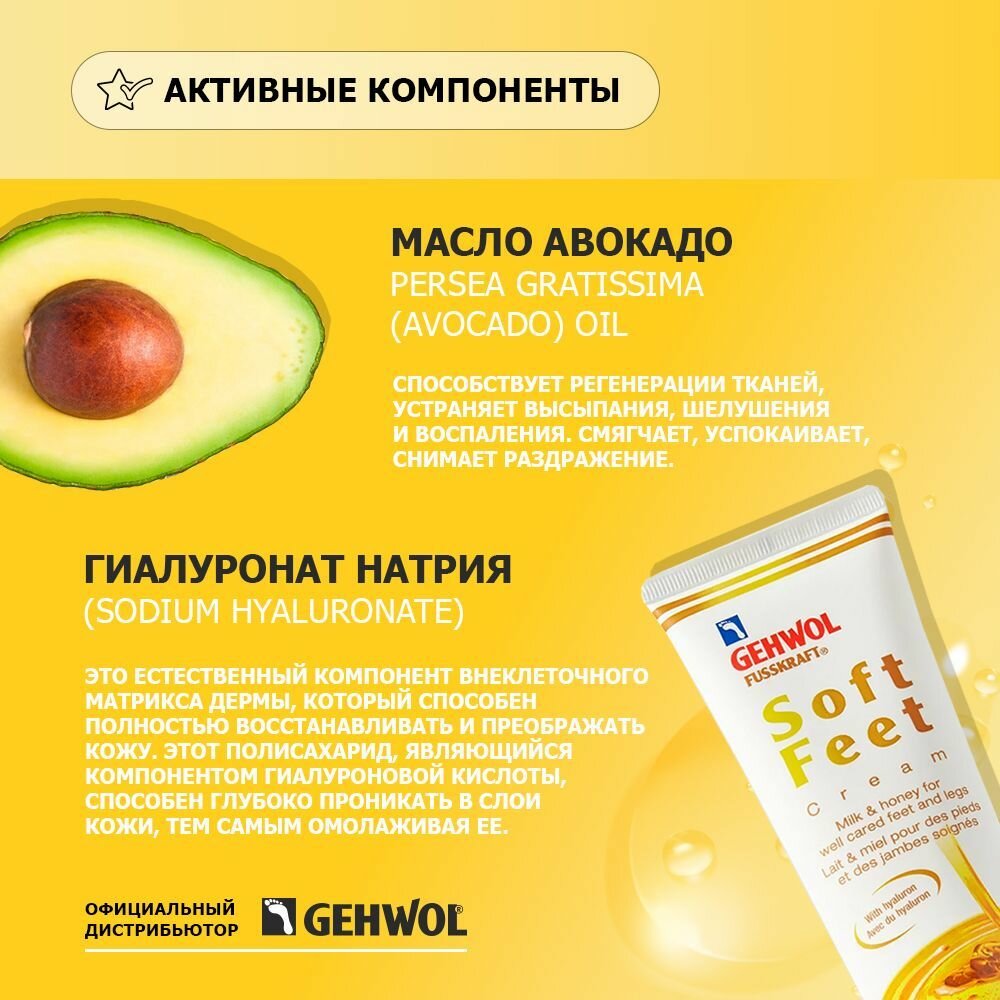 Gehwol Soft Feet Creme Шелковый крем для ног «Молоко и мед» с гиалуроновой кислотой, 125 мл