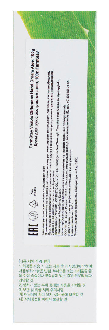 FARMSTAY Visible Difference Aloe Крем для рук с экстрактом Алоэ 100 мл