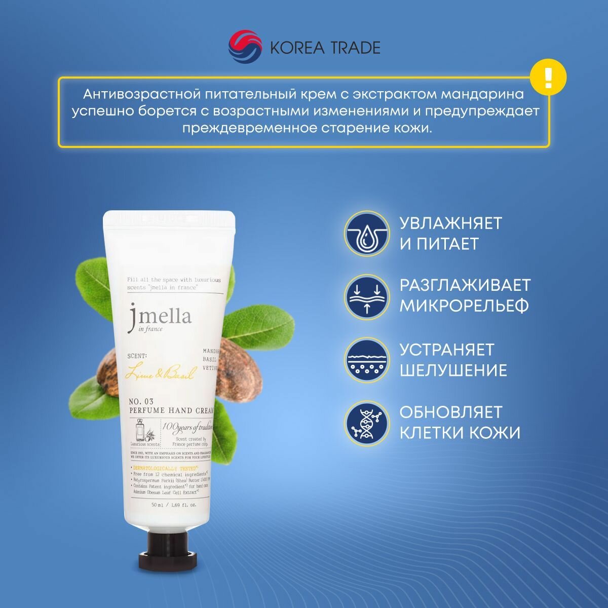 JMELLA IN FRANCE LIME & BASIL антивозрастной парфюмированный крем для рук с запахом мандарина и лайма, 50 мл
