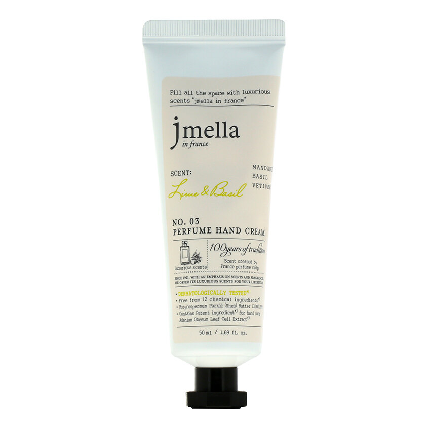 Jmella In France Омолаживающий крем для рук с цитрусовым ароматом Lime & Basil Perfume Hand Cream, 50 мл