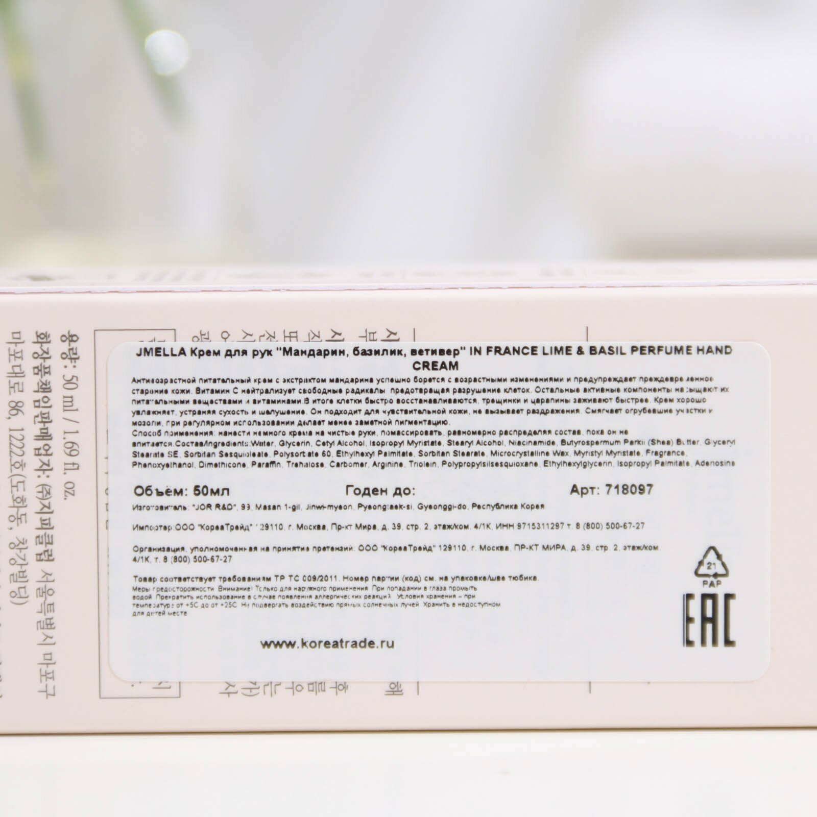JMELLA IN FRANCE LIME & BASIL антивозрастной парфюмированный крем для рук с запахом мандарина и лайма, 50 мл