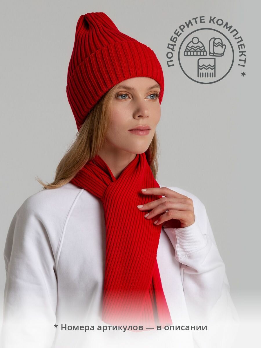 СохранитьШапка бини кусто вязаная с отворотом теплая женская мужская унисекс Yong красная интересное: