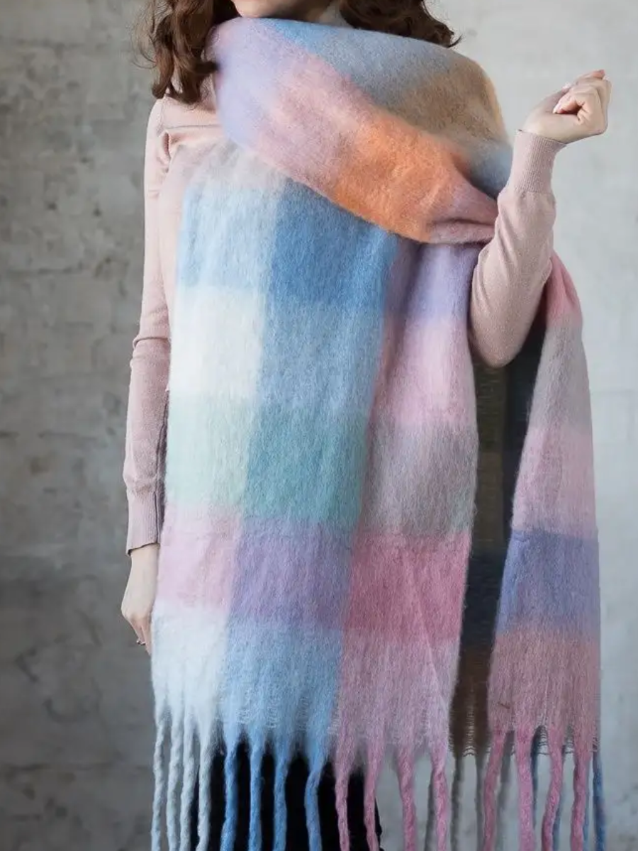 Сток цена/Шарф длинный объемный в клетку разноцветный