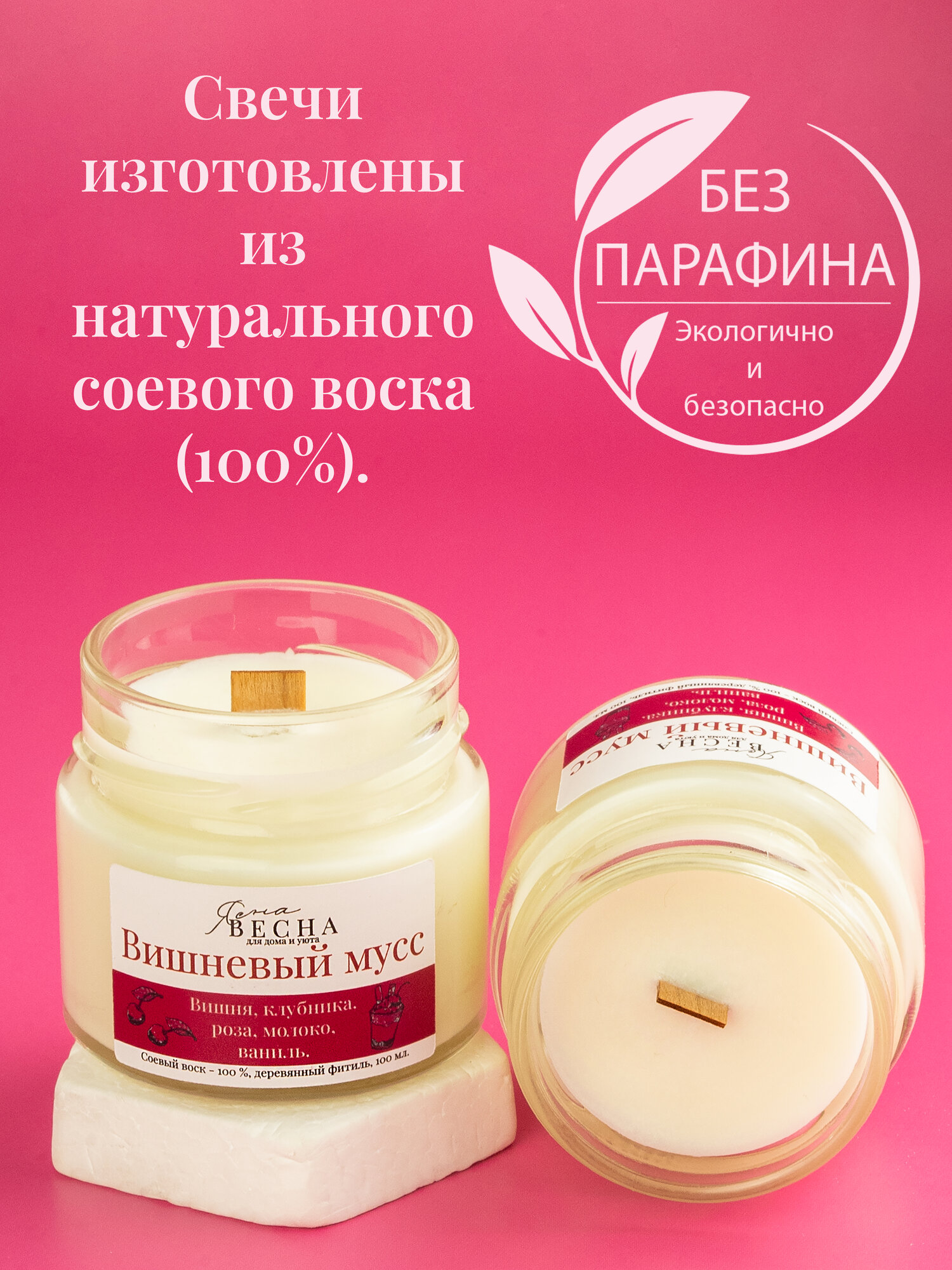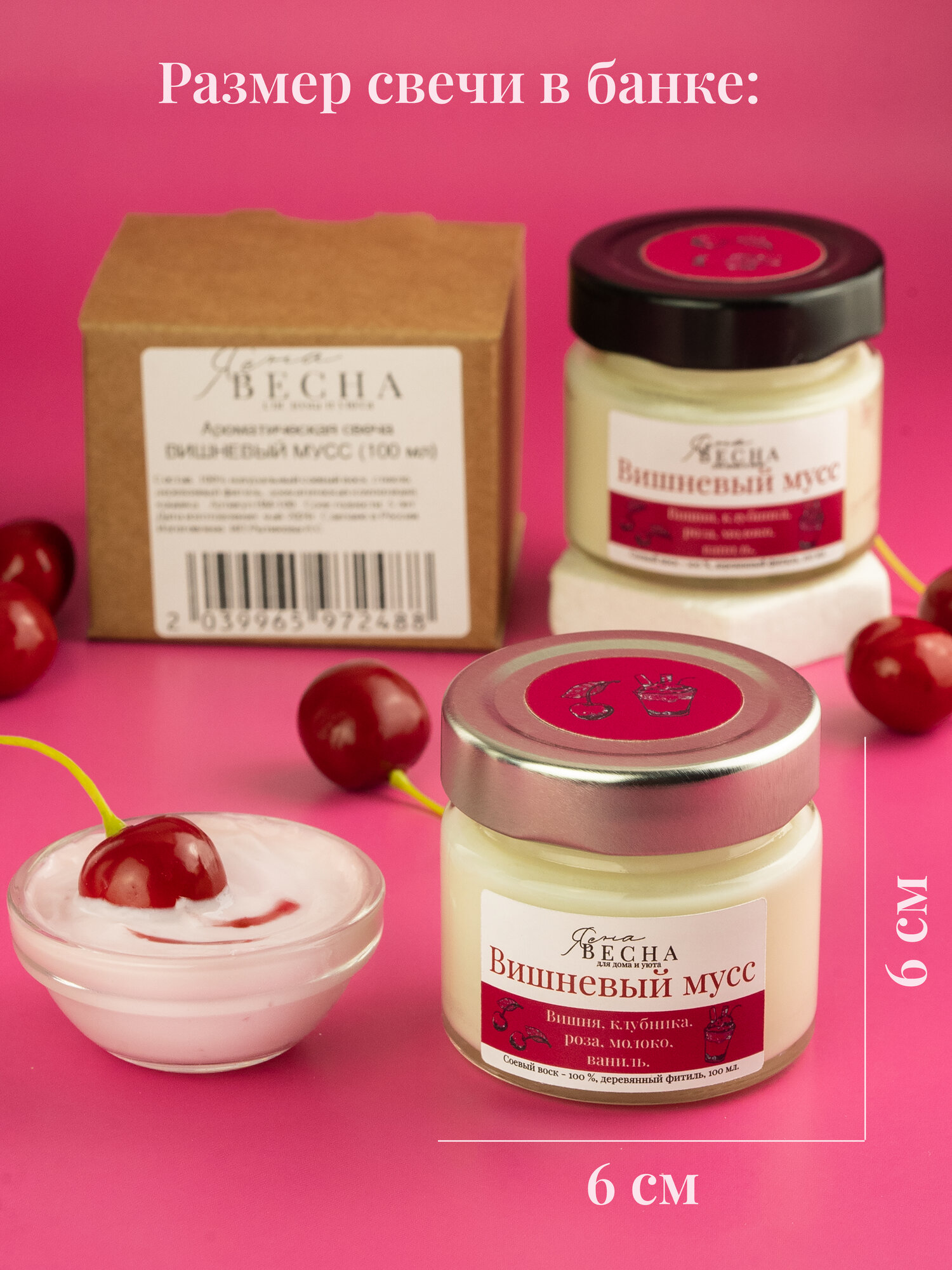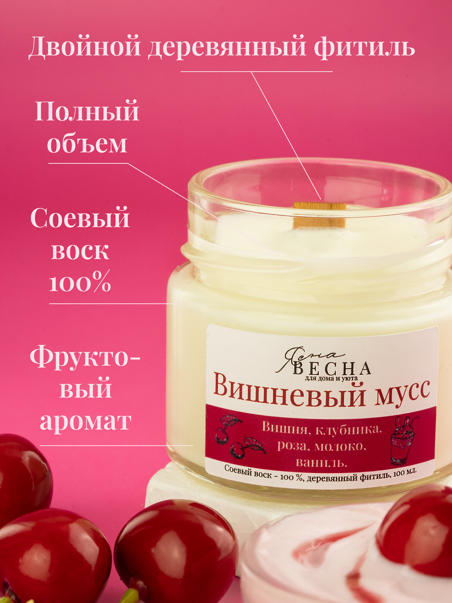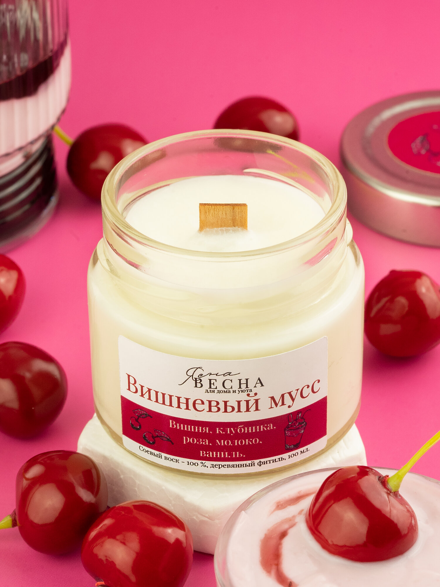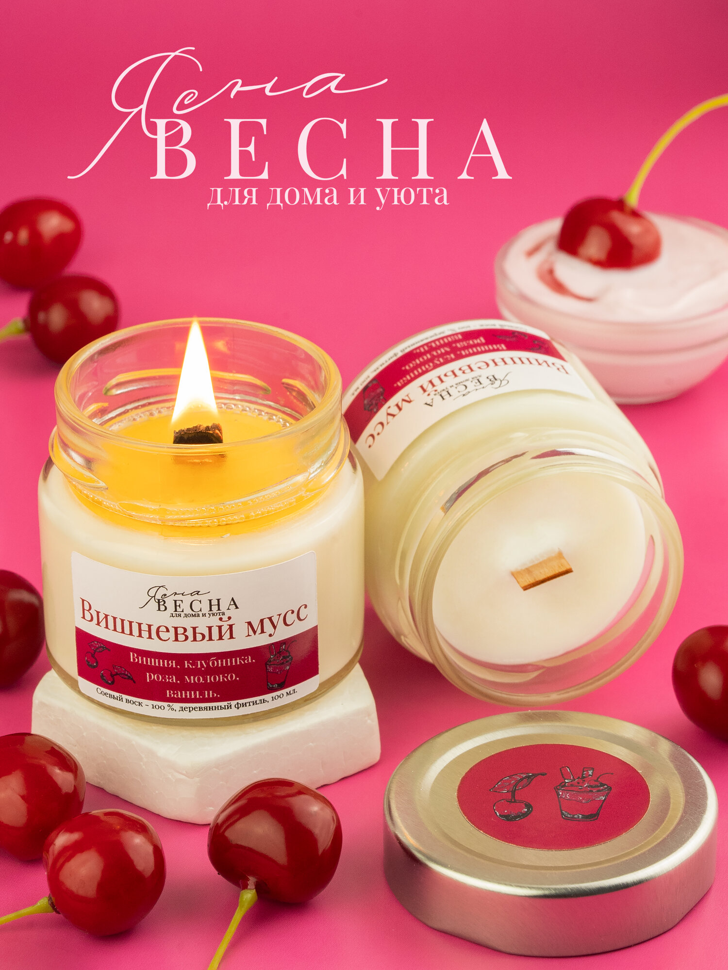 Купить Свеча ароматическая для дома с ароматом вишневый мусс в банке, объем 100 мл, двойной деревянный фитиль, соевый воск.