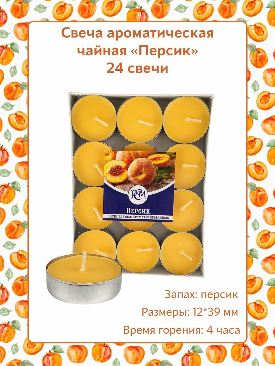 Купить Свеча Чайная ароматическая "Персик" 12*39 мм, запах: персик, 24 шт. в наборе