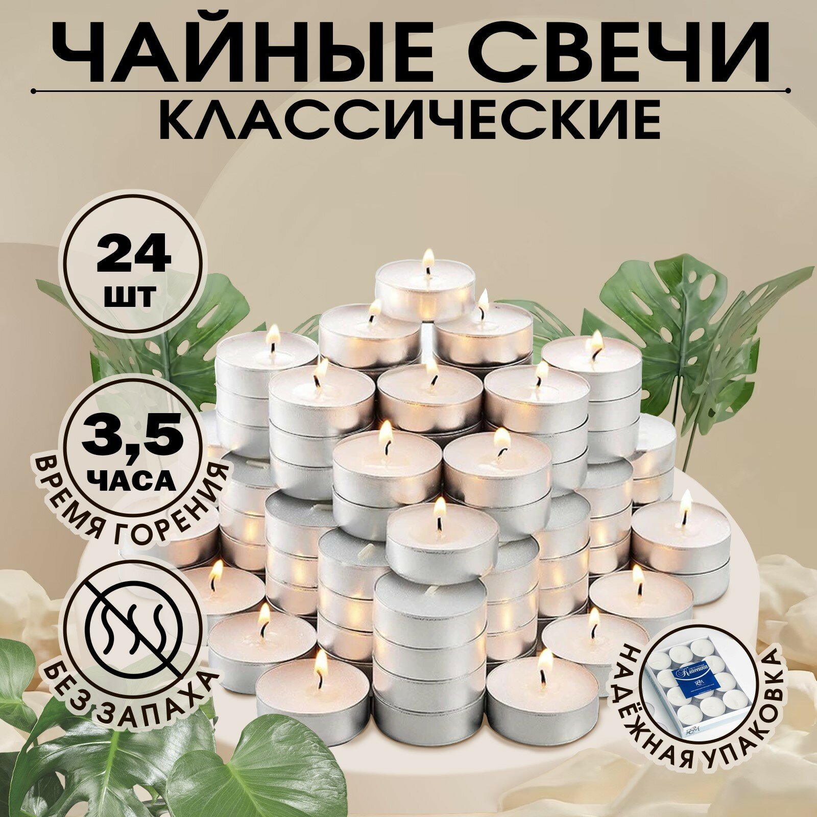 Набор чайных свечей "Классика", 24 шт