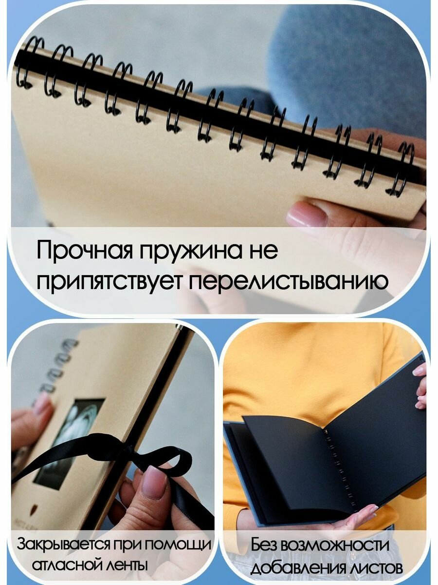 Фотоальбом семейный на пружине для фото, 20х20 см, 40 черных листов