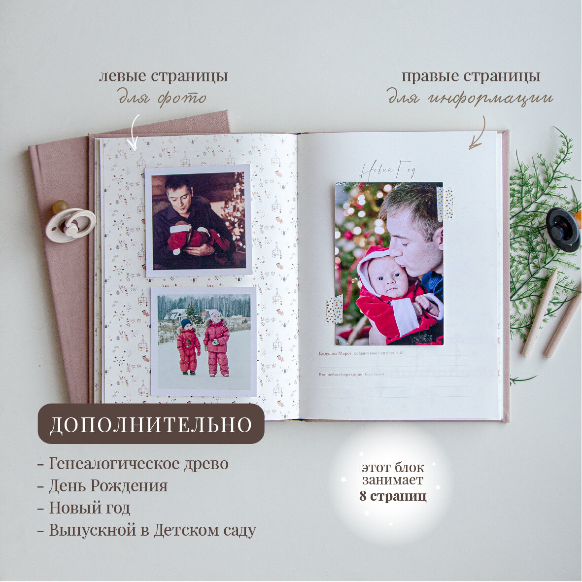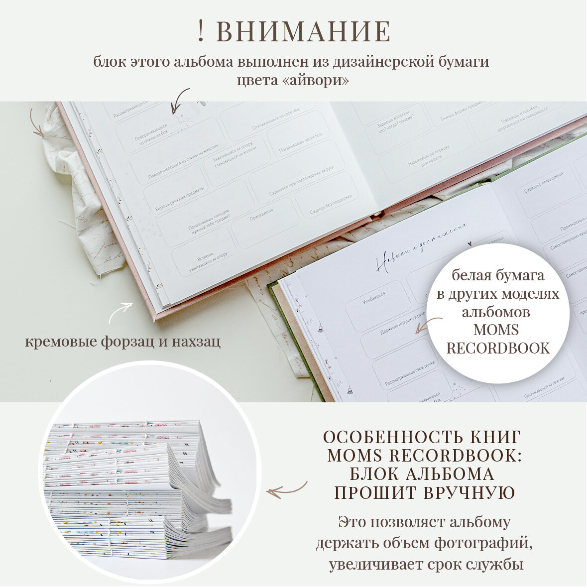 Первый альбом новорожденного / Топленое молоко / айвори бумага / 76 фото