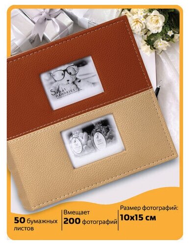 Фотоальбом из эко-кожи, двухцветный с вышивкой, 200 фото 10х15 см в кармашках