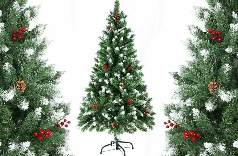 Ель искусственная Зимнее волшебство Иней с ягодами, 150 см, зеленая