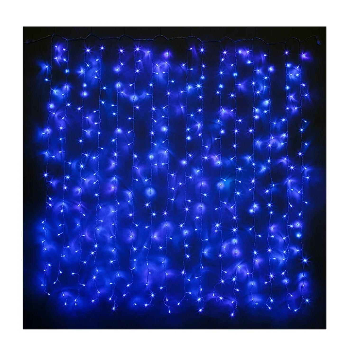 Гирлянда дождик 2 х 2 метра / Новогодняя штора / Занавес на окно / Гирлянда занавес / Гирлянда штора цвет: Синий