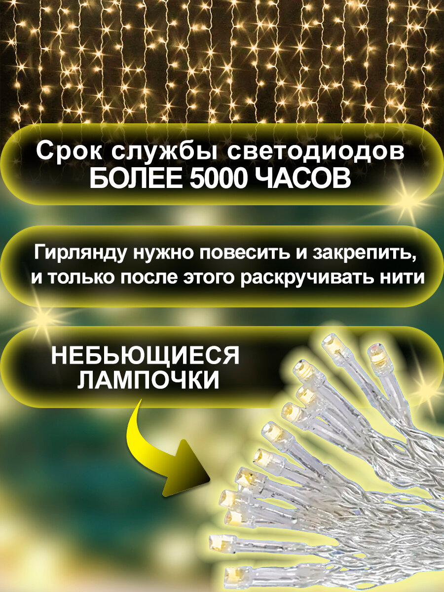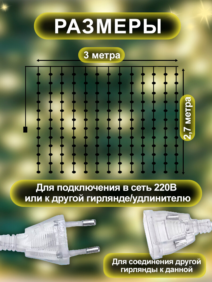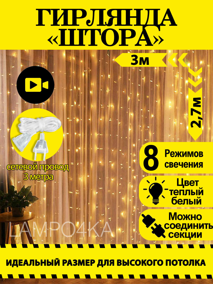 Светодиодная гирлянда-штора "LAMPO4KА", 3 х 2,7 метра, теплый белый цвет интересное:
