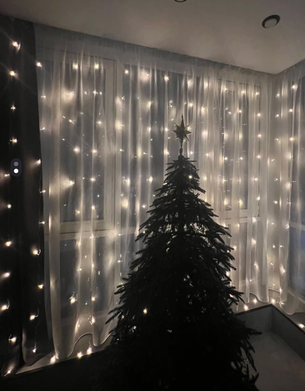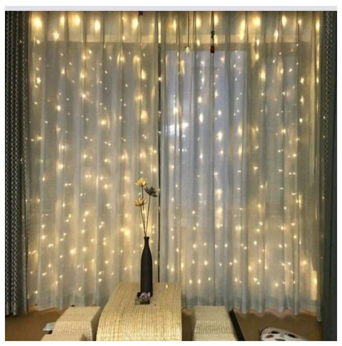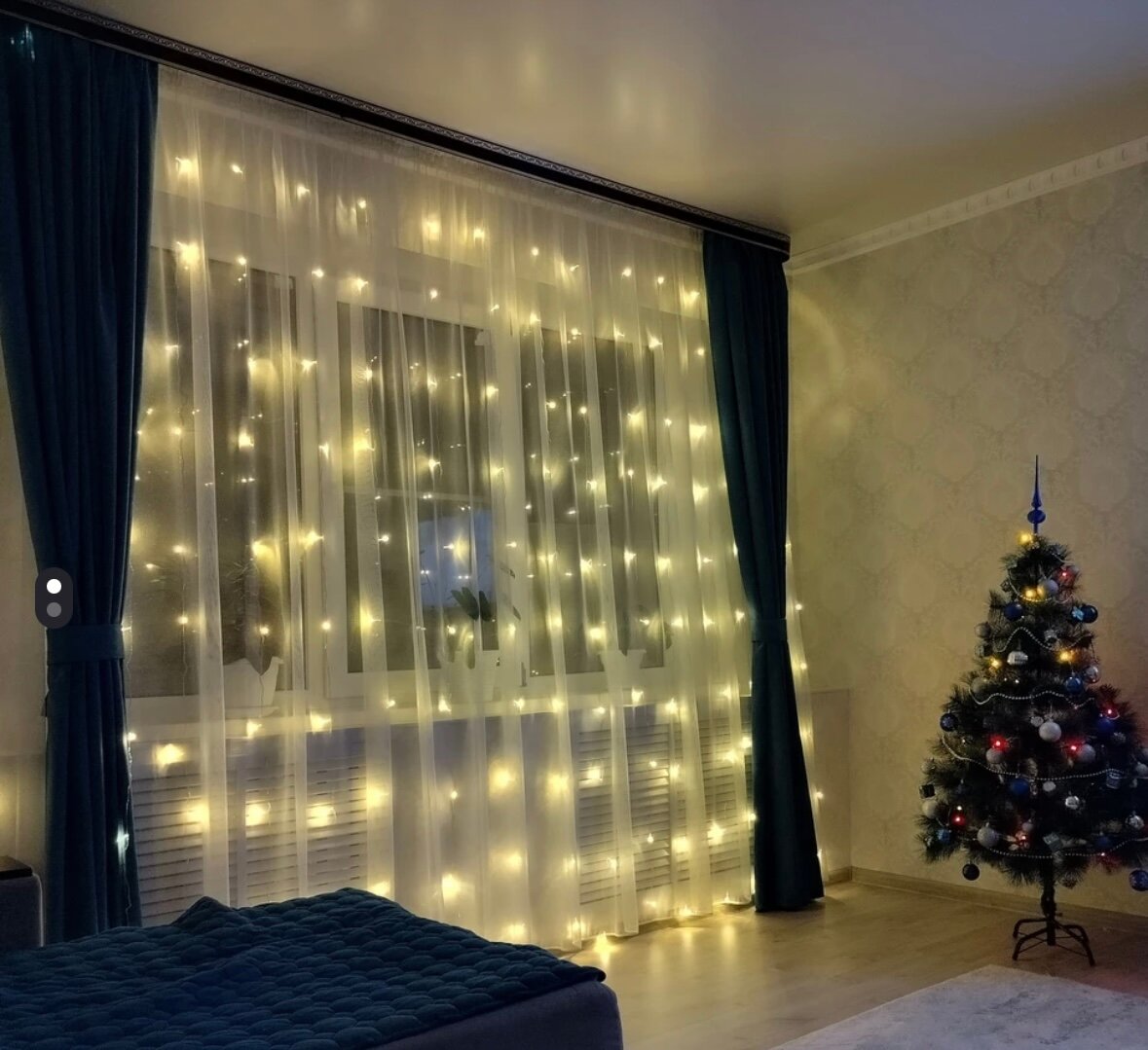 Светодиодная гирлянда штора занавес на окно 3х2,5 теплый белый
