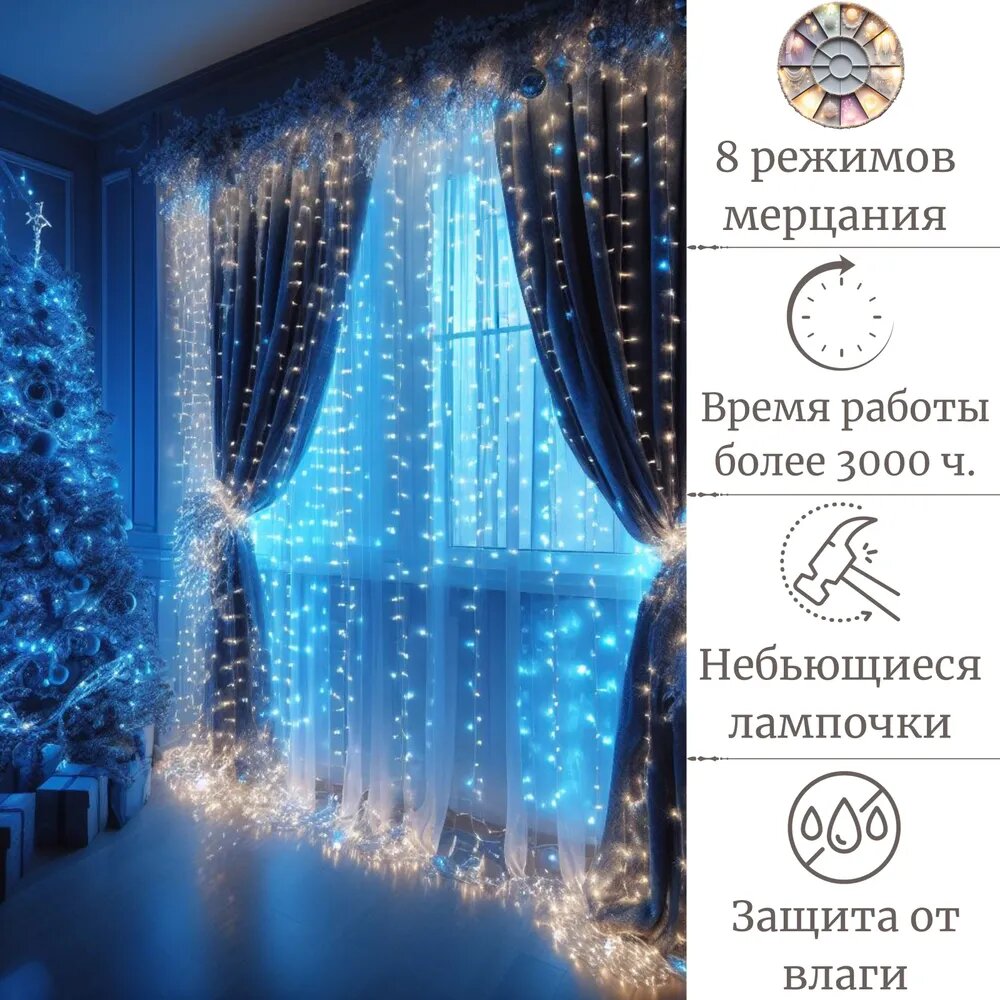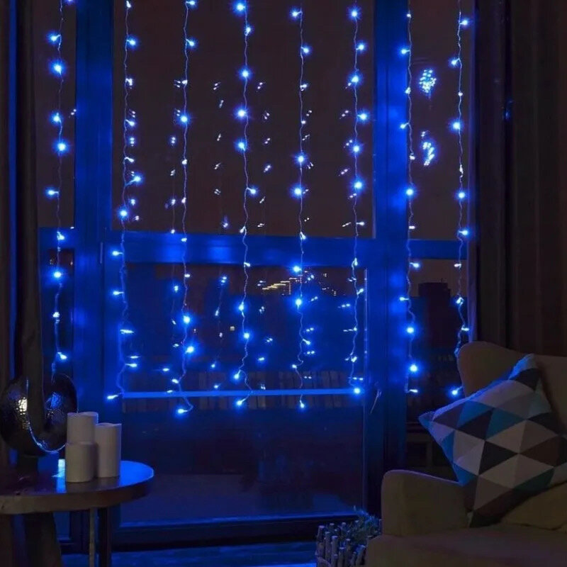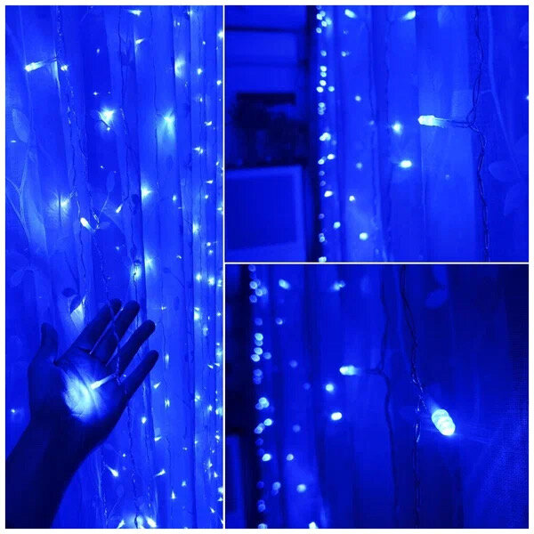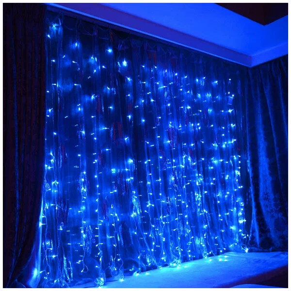 Гирлянда штора 1,5 х 1,5м Синяя интересное:
