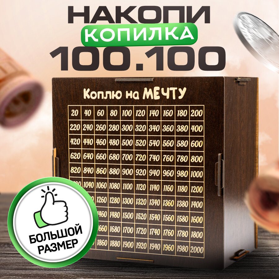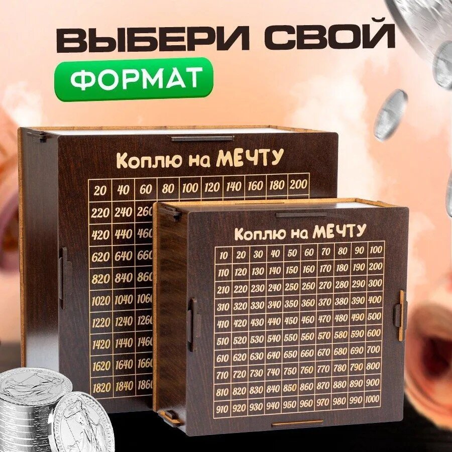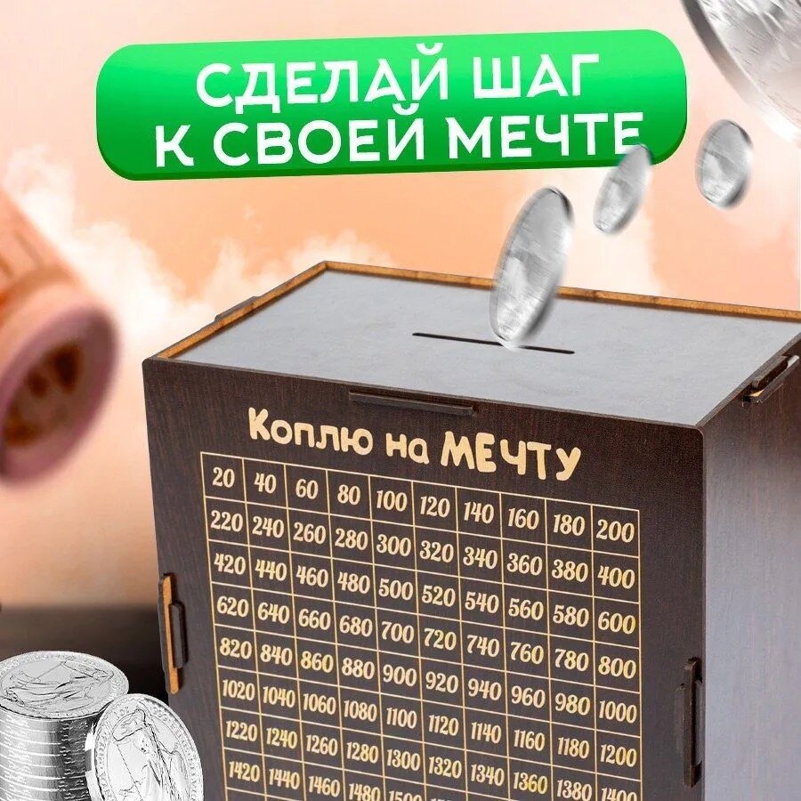 Копилка для денег деревянная с цифрами для зачеркивания на мечту на 500.000