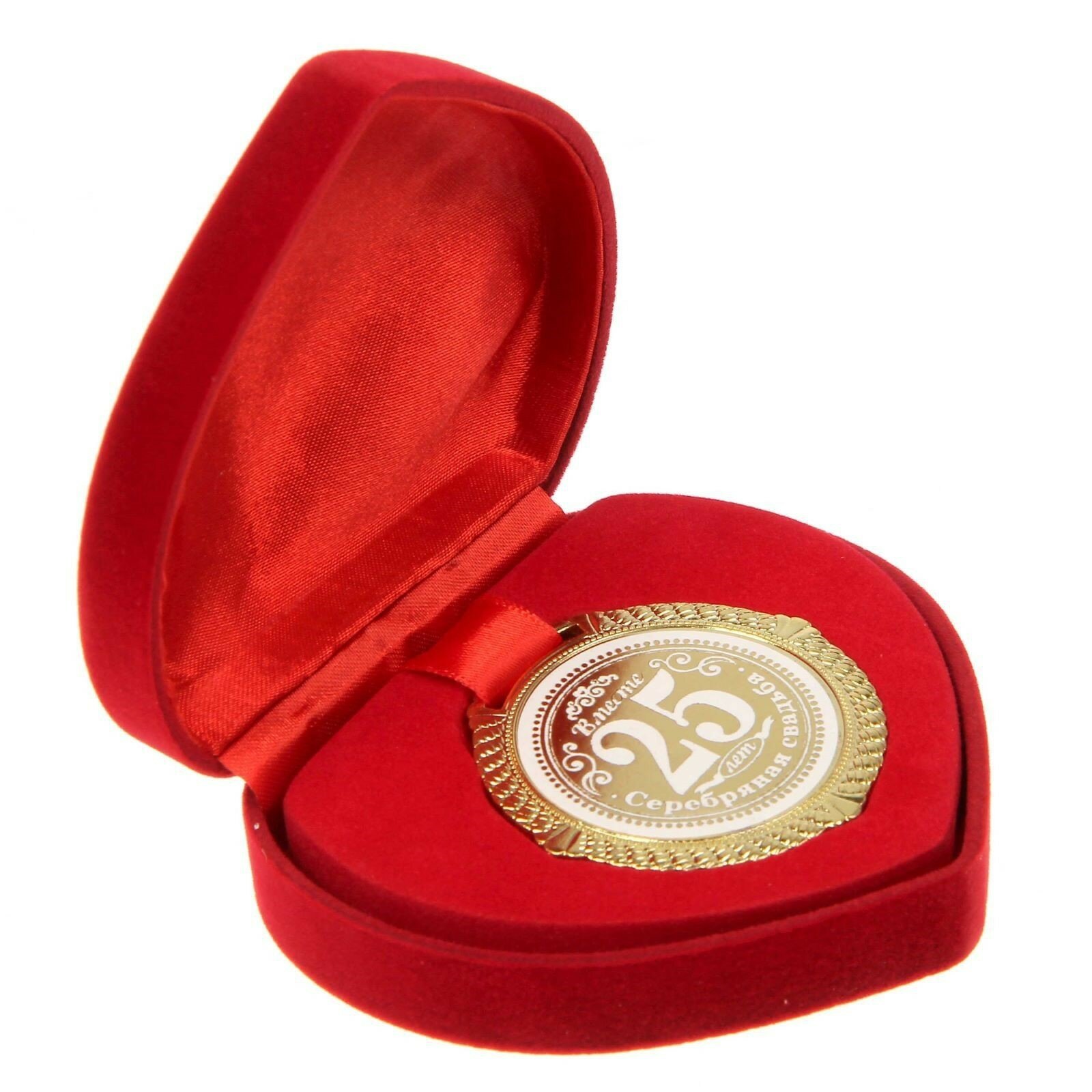 Медаль свадебная в бархатной коробке "Серебряная свадьба 25 лет вместе", d= 5 см интересное:
