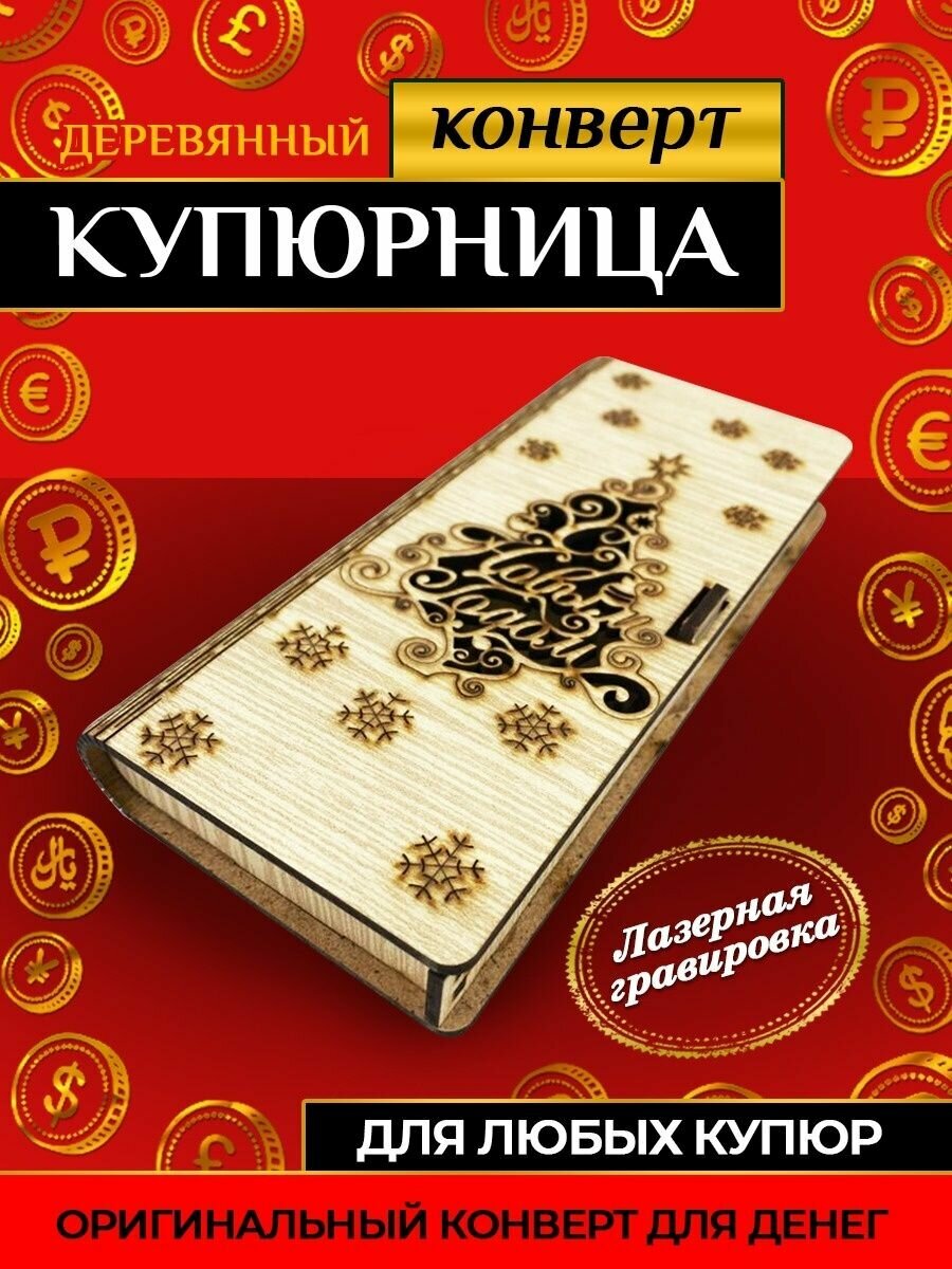 Деревянный конверт для денег "С Новым годом!" интересное: